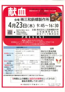 4月23日(木)に、当社にて献血を実施いたします。